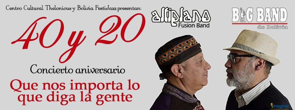 El concierto de jazz y folklore titulado 40 y 20 será interpretado por Altiplano y la Big Band Bolivia en ocasión de celebrar los 40 años de trayectoria de Altiplano y los 20 años de la Big Band Bolivia.