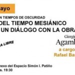 Se realizará un Ciclo de Conferencias en la Sala Multifuncional del Anexo del Espacio Simón I. Patiño a partir de esta noche. El ciclo de conferencias Provocaciones en tiempos de oscuridad presenta su primera sesión con el escritor y filósofo boliviano Rafael Bautista S. quien hablara Del tiempo mesiánico al pachakuty un diálogo con la obra de Giorgio Agamben. Este ciclo, … [Leer más...] acerca de Ciclo de Conferencias Provocaciones en tiempos de oscuridad – Espacio Simón I. Patiño