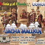 El reconocido grupo Jach'a Mallku cumple 30 años de actividad artística y lo celebrará con conciertos que empiezan mañana en el Teatro 16 de Julio. En esta especial ocasión tendrán como invitados a La Bada Caba junto a los platilleros de la Banda Poopó, con quienes se ofrecerá una selección especial de morenadas. Además de los conciertos, el grupo empezará con la … [Leer más...] acerca de Para Bolivia y el Mundo Concierto de Jach’a Mallku – Teatro 16 de Julio
