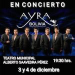 Este fin de semana el conocido grupo Ayra Bolivia presenta un concierto en el Teatro Municipal Alberto Saavedra Pérez. Este sábado 3 y domingo 4 el grupo Ayra Bolivia realizará su concierto titulado La fuerza de nuestra cultura, en el que estrenará su nueva producción musical junto a una orquesta de cuerdas y un coro de invitados especiales. El grupo Ayra Bolivia se … [Leer más...] acerca de La fuerza de nuestra Cultura – Concierto Teatro Municipal Alberto Saavedra Pérez