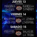 Este fin de semana en el Alive Music Bar: jueves 13 MAKURKA SAISES, RAMEX SYNERGY 4to. Aniversario Cover viernes 14 WALKMAN, CIRCO PIG, LA LENGUA, LIVERPOOL 4to. Aniversario Cover sábado 15 LOS TOCAYOS, LAS BALAS QUE VENDRAN, LA TRIBU 4to. Aniversario Cover Este fin de semana 46 2014 - Alive Music Bar Lugar: Alive Rockers Music Bar, Av. … [Leer más...] acerca de Este fin de semana 46 2014 – Alive Music Bar