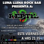 Este fin de semana el Metal lo encuentras en el Luna Llena: viernes 18 REPTIL Hard Rock y Heavyr Metal Cover Este fin de semana 29 2014 - Luna Llena Rock Bar Lugar: Luna Llena Rock Bar, Av. Ecuador Nro.2582 esq. Pedro Salazar Fecha: jueves 17, viernes 18, sábado 19 de Julio 2014 Horas: 21:00 … [Leer más...] acerca de Este fin de semana 29 2014 – Luna Llena Rock Bar
