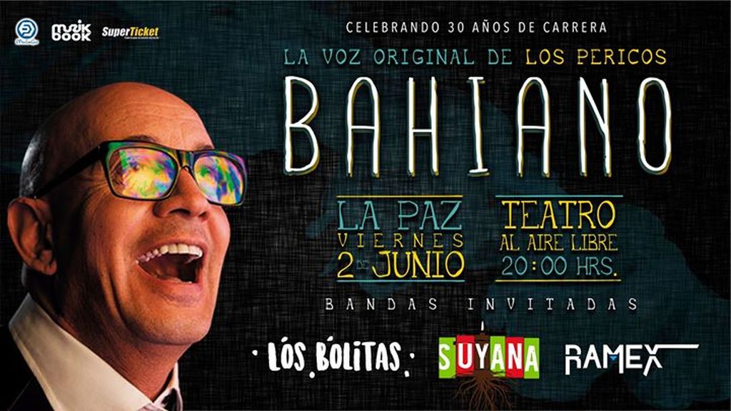 El concierto de el Bahiano, ex lider y vocalista de la banda de reggae Los Pericos celebra en La Paz su 30 aniversario de carrera artística brindando a su público un espectáculo en el que interpretará sus mejores canciones.