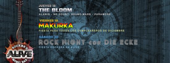 El programa de fin de semana en el Alive Music Bar es el siguiente: