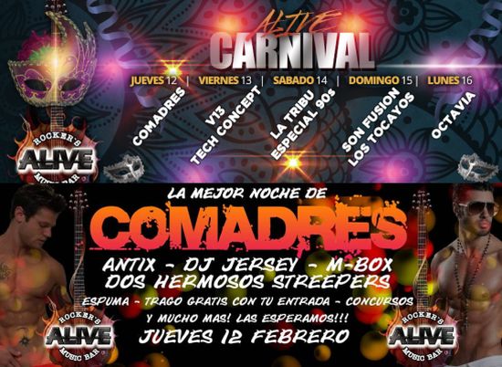 El largo programa para este Carnaval 2015, te ofrece muchisima diversión en el Alive Music Bar: