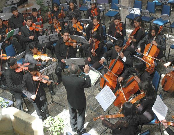 Instituto Domingo Savio (Calacoto). Participación del Cuarteto Arcanus y la Orquesta Juvenil Domingo Savio.