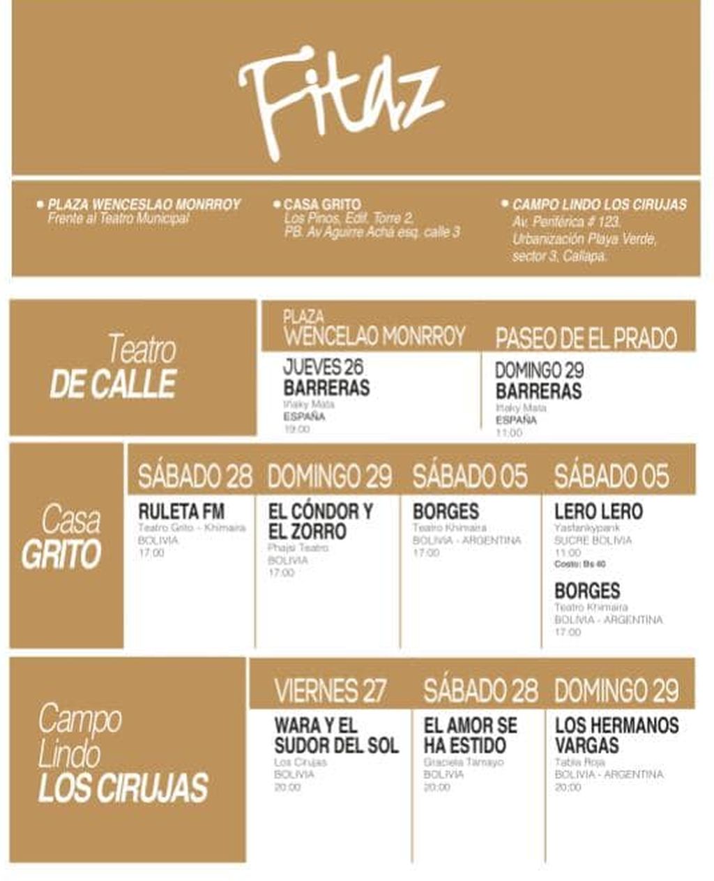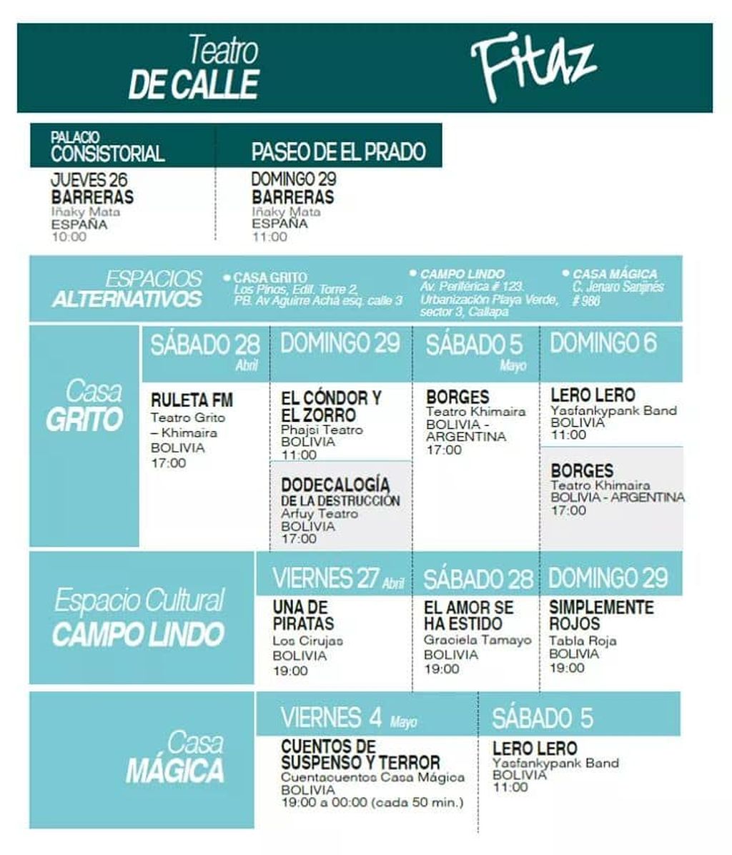 Este jueves 26 de Abril empieza el Festival Internacional de Teatro en La Paz de este año, el Fitaz 2018.