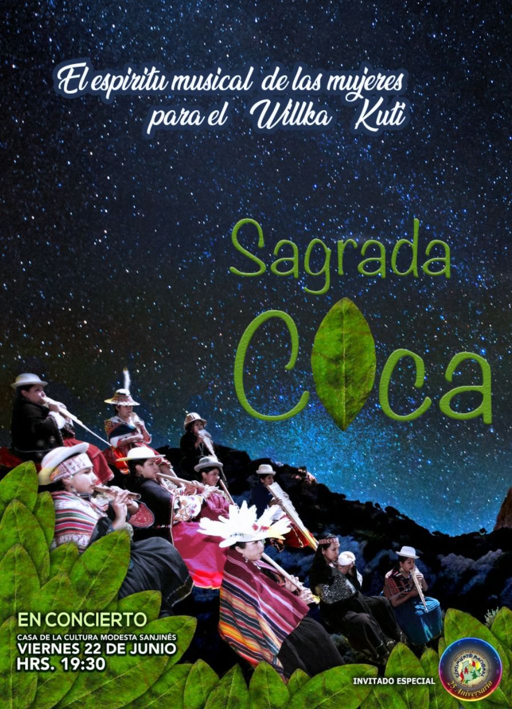 El grupo femenino Comunidad Sagrada Coca tiene casi 15 años de trayectoria y su especialidad es el género musical de origen ancestral andino, actualmente tiene las siguientes integrantes: Judith López, Juana Sirpa, Cinthia Soria, María del Carmen Guerra, Evelyn Gutiérrez, Flor Guzmán, Naira Cardozo, Lineth Pari, Inti Tapia, María Luz Benito, Elizabeth Matías y Lourdes Bacarreza.