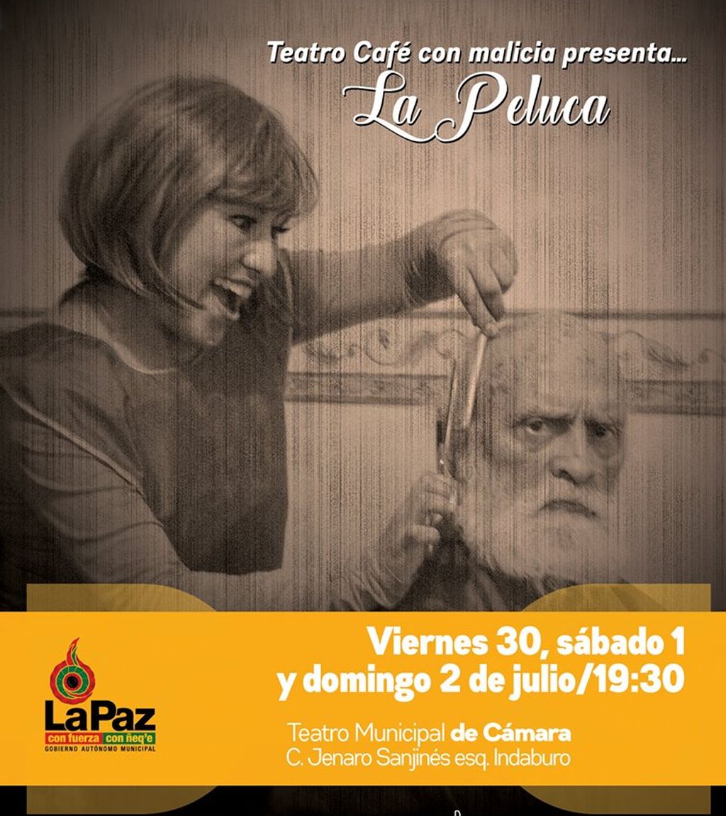 La compañía teatral vuelve a llevar a las tablas la obra La Peluca, el elenco de Café con Malicia dirigido por el reconocio dramaturgo José Aramayo interpretará esta obra cuyo tema son los temores y caprichos, La Peluca habla de cubrir temores, ausencias físicas y del alma, en una peluquería los cabellos recorren todos los espacios en el piso que los recibe y llenándolos de: olvidos, dejadeces, frustraciones, esperanzas, ambiciones, dolencias físicas que quisiera ocultar, que terminarán barridas, mientras la peluquería se recarga de energía con otros clientes.