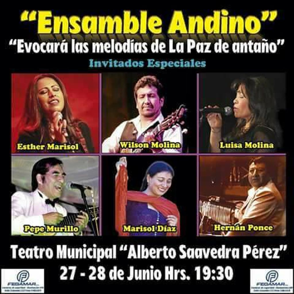 Este miércoles 27 y jueves 28 el Ensamble Andino realizará el concierto Melodías de La Paz de Antaño que tendrá invitados especiales como: Esther Marisol, Luisa Molina, Marisol Díaz, Pepe Murillo y Wilson Molina.