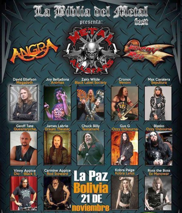Precio: Metal All Stars 1000 Bs, Baron Rojo 600 Bs, Angra 350 Bs, General 200 Bs.