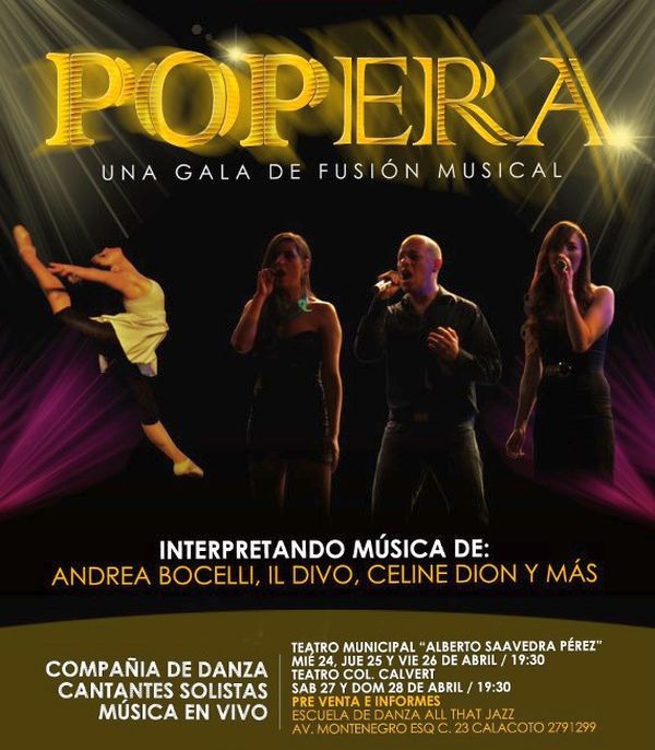 AllThat Jazz Producciones presenta esta semana Pop era un espectáculo que fusiona música popular contemporánea y ópera, al estilo que impusieron los tenore Pavaroti, Carreras y Domingo y que hoy se impone en los principales escenarios del mundo con intérpretes como Andrea Bochelli, Il Divo, IlVolo, Celine Dion y otros.