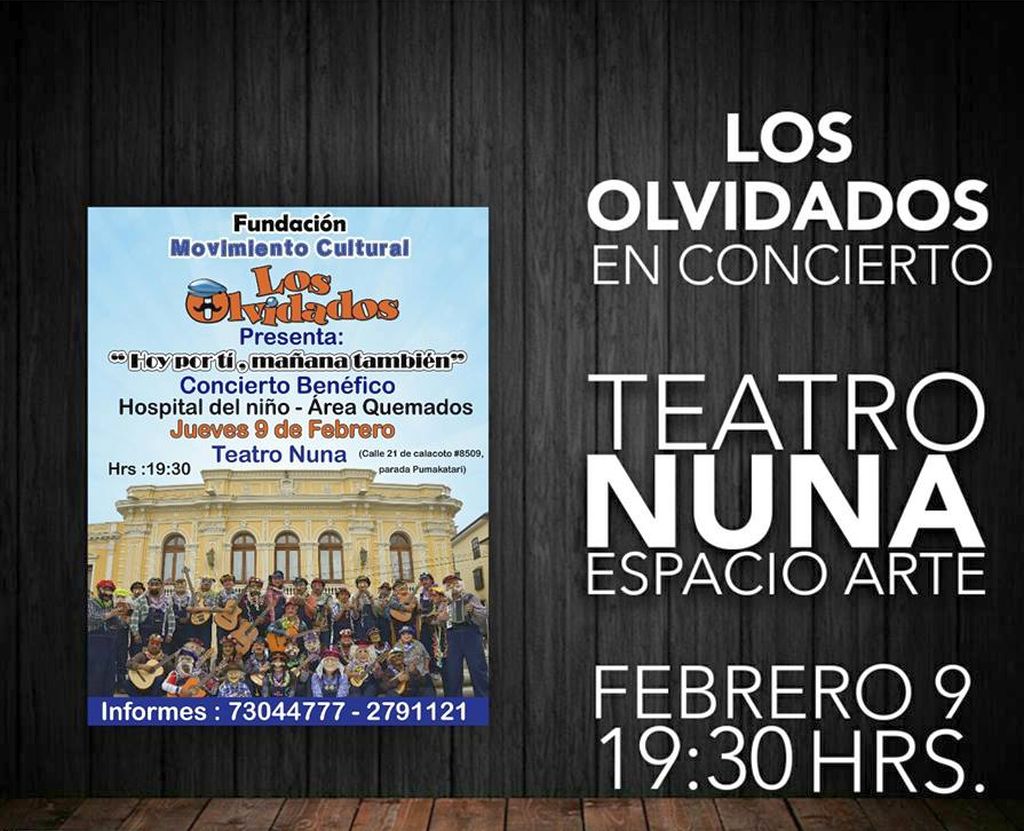 La Fundación Movimiento Cultural Los Olvidados ha preparado este evento para su precarnavalera, titulado, Hoy por ti mañana también, es un recital en beneficio del área Quemados del Hospital del Niño.