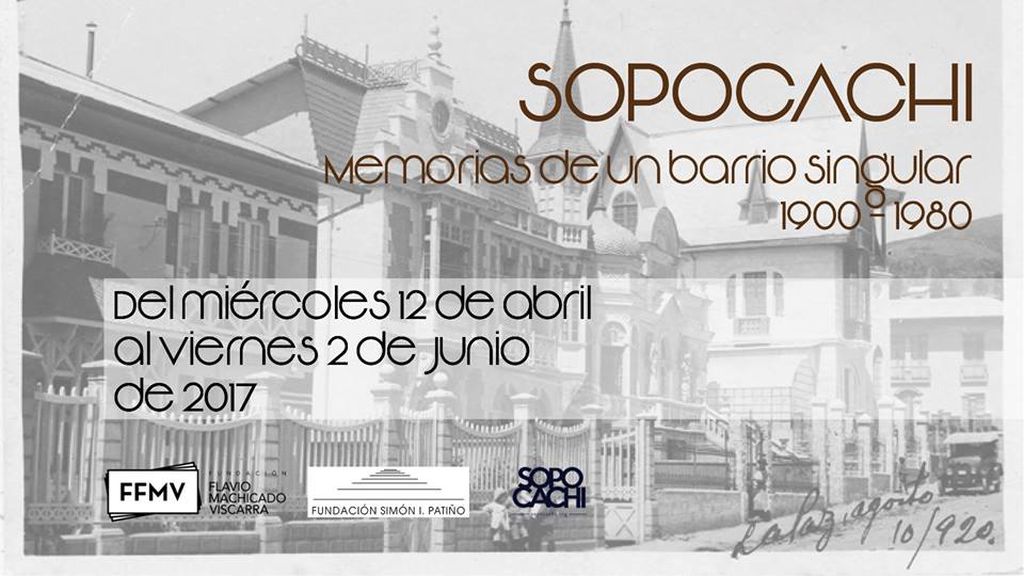 La Sala de Exposiciones del Espacio Simón I. Patiño acogerá la exposición fotográfica titulada Sopocachi, Memorias de un Barrio Singular 1900-1980, una recopilación histórica que muestra las características especiales de este barrio. Esta propuesta nace de una alianza entre tres Instituciones culturales sin fines de lucro: el Espacio Simón I. Patiño, la Fundación Flavio Machicado Viscarra y el sitio web Cultural Sopocachi (sopocachi.org) que iniciarion la recuperación de la memoria de uno de los barrios más icónicos de la ciudad de La Paz.